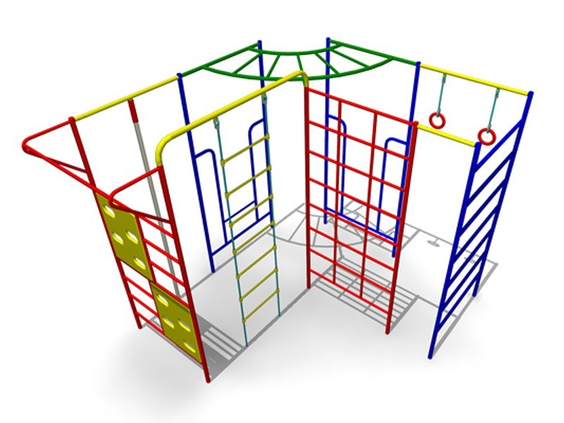 Многофункциональный гимнастический комплекс, имеет сборно-разборную конструкцию посредством токарного крепления. Гимнастический комплекс включает в себя две входные стойки, верхнюю часть, гимнастическую стенку, снаряд «Сетку», снаряд «Скалолаз», турник под гимнастические кольца, турник под уличный канат, турник под стремянку, соединительный турник, стремянку, уличный канат и гимнастические кольца. Оборудование устанавливается и бетонируется в грунт. Возраст пользователя от 9 до 14 лет. Входные стойки, гимнастическая стенка, снаряд «Сетка», снаряд «Скалолаз», турник под гимнастические кольца, турник под уличный канат и турник под стремянку выполнены из круглой трубы сечением  не менее 42 мм. и листового металла толщиной не менее 4 мм. Верхняя часть и соединительный турник выполнены из круглой трубы сечением  не менее 42 мм. Гимнастические кольца выполнены из влагостойкой фанеры толщиной не менее 24 мм. и полипропиленового каната с металлическим сердечником сечением не менее 16 мм. Уличный канат выполнен из полипропиленового каната сечением не менее 40 мм., круглой трубы сечением  не менее 42 мм., равнополочного уголка сечением не менее 25*25 мм. Стремянка выполнена из полипропиленового каната с металлическим сердечником сечением не менее 16 мм., равнополочного уголка сечением не менее 25*25 мм., штампованных пластиковых ступеней. Все металлические и фанерные элементы выполнены с применением высокоточного оборудования. Металлические элементы изготавливаются из круглых труб, с применением горячекатаного листа. Весь применяемый металлопрокат соответствует ГОСТ 10705-80, ГОСТ 1577-93. Сварные швы конструкций из металла гладкие (ГОСТ Р 52169-2012 п.4.3.10). Все металлические элементы окрашиваются порошковой краской финского производителя TEKNOS, соответствующей требованиям санитарных норм и экологической безопасности. Для более качественного прокраса все металлические элементы проходят двойной цикл покраски. Все фанерные элементы изготовлены из многослойной влагостойкой, склеенной под прессом и соответствующей ГОСТ 30427-96 фанеры; изгибы, радиусы и скругленные кромки тщательно отшлифованы и обработаны краской для закрытия торцов JRM (ГОСТ Р 52169-2012 п.4.3.11). Окраска фанерных элементов происходит в три слоя: первый слой – грунтование заготовки с последующим шлифованием поверхности, второй слой – покраска двухкомпонентной краской с последующим шлифованием поверхности, третий слой – финишная покраска. Все фанерные элементы окрашиваются краской финского производителя TEKNOS, соответствующей требованиям санитарных норм и экологической безопасности. Крепеж оцинкован. Выступающие части резьбовых соединений закрыты пластиковыми заглушками (ГОСТ Р 52169-2012 п. 4.3.9). Крепление элементов оборудования исключает возможность их демонтажа без применения инструментов (ГОСТ Р 52169-2012 п. 4.3.13). Изделие сопровождается: а) техническим паспортом завода-изготовителя (ГОСТ Р 52301-2004 п. 5), в котором указано предназначение, номер изделия, правила безопасной эксплуатации и схема сборки. б) комплектом крепежа для сборки и монтажа. Сборочно-монтажные работы выполняются с соблюдением требований национальных стандартов по установке детского игрового оборудования и согласно схемам монтажа предприятия-изготовителя.