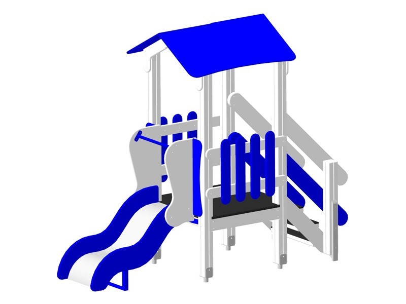 Горка представляет собой сборноразборную, модульную конструкцию, состоящую из шести опорных столбов, одной площадки, одного лестничного марша, четырех перил к лестничному маршу, одного ската горки с высотой стартового участка 600 мм., двух ограждений, одной крыши с фанерными скатами и фронтонами. На вершины столбов устанавливаются пластиковые заглушки. Оборудование устанавливается и бетонируется на оцинкованные металлические подпятники. Возраст пользователя от 3 до 6 лет. Опорные столбы выполнены из клееного бруса сечением не менее 100*100 мм. с канавкой посередине. Пол горки выполнен из хвойной доски влажностью 7-10% сечением не менее 40*110 мм., ламинированной фанеры с противоскользящим покрытием толщиной не менее 24 мм. и влагостойкой фанеры толщиной не менее 15 мм. Металлические подпятники, выполнены из круглой трубы сечением не менее 42 мм. и листового металла толщиной не менее 4 мм. Подпятники к лестничному маршу выполнены из профильной трубы сечением не менее 40*20 мм. и листового металла толщиной 4 мм. Лестничный марш выполнен из хвойной доски влажностью 7-10%  сечением не менее 140*40 мм. и ламинированной фанеры с противоскользящим покрытием толщиной не менее 15 мм. Перила к лестничному маршу выполнены из хвойной доски влажностью 7-10%  сечением не менее 140*40 мм. Скат горки выполнен из влагостойкой фанеры толщиной не менее 24 мм. и единого листа нержавеющей стали толщиной не менее 1,5 мм. Скат горки имеет металлический каркас, выполненный из профильной трубы сечением не менее 20*40 мм. Стартовый участок горки имеет ограждения, выполненные из влагостойкой фанеры толщиной не менее 24 мм. и турник – ограничитель, выполненный из круглой трубы сечением не менее 27 мм. и листового металла толщиной 4 мм. Ограждения выполнены из фанеры толщиной не менее 24 мм. Скаты крыши выполнены из фанеры толщиной не менее 15 мм., фронтоны крыши выполнены из фанеры толщиной 24 мм. Все металлические элементы выполнены с применением высокоточного оборудования. Деревянные и фанерные элементы изготавливаются на полуавтоматизированной линии по обработке деревянных и фанерных изделий.   Все деревянные элементы изготавливаются из хвойной доски влажностью 7-10%, подвергаемой склейке по длине и ширине заготовки с применением клеев зарубежных производителей; изгибы, радиусы и скругленные кромки тщательно отшлифованы и обработаны краской для закрытия торцов JRM (ГОСТ Р 52169-2003 п.4.3.11). Все деревянные элементы проходят окраску в три слоя: первый слой – грунтование заготовки с последующим шлифованием поверхности, второй слой – покраска вододисперсионной краской с последующим шлифованием поверхности, третий слой – финишная покраска. Все деревянные элементы окрашиваются краской финского производителя TEKNOS, соответствующей требованиям санитарных норм и экологической безопасности. Все металлические элементы изготавливаются из круглых труб, с применением горячекатаного листа. Весь применяемый металлопрокат соответствует ГОСТ 10705-80, ГОСТ 1577-93. Сварные швы конструкций из металла гладкие (ГОСТ Р 52169-2012 п.4.3.10). Все металлические элементы окрашиваются порошковой краской финского производителя TEKNOS, соответствующей требованиям санитарных норм и экологической безопасности. Для более качественного прокраса все металлические элементы проходят двойной цикл покраски. Все фанерные элем
