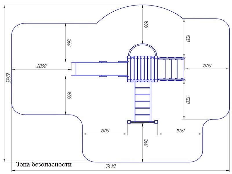 Игровой комплекс представляет собой сборноразборную, модульную конструкцию, состоящую из шести опорных столбов, одной площадки, одного лестничного марша, двух перил к лестничному маршу, выполненных в виде металлического каркаса с фанерными экранами, одного ската горки с высотой стартового участка не менее 950мм, одной гимнастической стенки из турников, одного шеста для спуска с ручками, одного шеста для спуска с ручками,  одного прямого рукахода с ручками и дополнительными ступенями. Оборудование устанавливается и бетонируется на оцинкованные металлические подпятники. Возраст пользователя от 3 лет. Опорные столбы выполнены из клееного бруса сечением не менее 100мм*100мм с канавкой посередине. Площадка выполнена из доски сечением не менее 100мм*40мм. Металлические подпятники, выполнены из круглой трубы сечением не менее 42мм и листового металла толщиной не менее 4мм. Лестничный марш выполнен из сухой доски сечением не менее 140мм*40мм. Перила к лестничному маршу выполнены из круглой трубы сечением не менее 27мм, листового металла толщиной не менее 4мм и фанеры толщиной не менее 15мм. Скат горки выполнен из фанеры толщиной не менее 24мм и единого листа нержавеющей стали толщиной не менее 1,5мм. Скат горки имеет металлический каркас, выполненный из профильной трубы сечением не менее 20мм*40мм. Стартовый участок горки имеет ограждения, выполненные из фанеры толщиной 24мм и имеет турник – ограничитель, выполненный из круглой трубы сечением не менее 27мм и листового металла толщиной 4мм. Распорные турники гимнастической стенки выполнены из круглой трубы сечением не менее 27мм и листового металла толщиной не менее 4мм. Прямой рукаход выполнен из круглой трубы сечением не менее 34мм и листового металла толщиной не менее 4мм. Ручки и дополнительные ступени выполнены из круглой трубы сечением не менее 27мм и листового металла толщиной 4мм.  Шест для спуска выполнен из круглой трубы сечением не менее 42мм и листового металла толщиной не менее 4мм. Ручки выполнены из круглой трубы сечением не менее 27мм и листового металла толщиной не менее 4мм. Турники выполнены из круглой трубы сечением не менее 27мм и листового металла толщиной не менее 4мм. Все металлические элементы выполнены с применением высокоточного оборудования. Деревянные и фанерные элементы изготавливаются на полуавтоматизированной линии по обработке деревянных и фанерных изделий. Все деревянные элементы изготавливаются из хвойной доски влажностью 7-10%, подвергаемой склейке по длине и ширине заготовки с применением клеев зарубежных производителей; изгибы, радиусы и скругленные кромки тщательно отшлифованы и обработаны краской для закрытия торцов JRM (ГОСТ Р 52169-2003 п.4.3.11). Все деревянные элементы проходят окраску в три слоя: первый слой – грунтование заготовки с последующим шлифованием поверхности, второй слой – покраска вододисперсионной краской с последующим шлифованием поверхности, третий слой – финишная покраска. Все деревянные элементы окрашиваются краской финского производителя TEKNOS, соответствующей требованиям санитарных норм и экологической безопасности. Все металлические элементы изготавливаются из круглых труб, с применением горячекатаного листа. Весь применяемый металлопрокат соответствует ГОСТ 10705-80, ГОСТ 1577-93. Сварные швы конструкций из металла гладкие (ГОСТ Р 52169-201