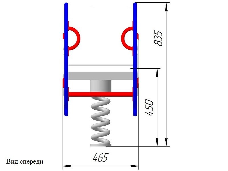 Качалка на пружине имеет сборноразборную конструкцию и выполнена в виде кораблика. Качалка включает в себя пружинный механизм, две боковые части с декоративными накладками, спинка, сидение, два распорных турника и две ручки. Качалка устанавливается и бетонируется в грунт при помощи основания для бетонирования. Возраст пользователя от 3 до 12 лет. Пружинный механизм выполнен из круглой трубы сечением не менее 133мм, листового металла толщиной не менее 6мм, равнополочного уголка сечением не менее 40мм*40мм и пружины из высокопрочной стали. Боковые части, спинка и сидение выполнены из влагостойкой фанеры толщиной не менее 24мм. Декоративные накладки выполнены из влагостойкой фанеры толщиной не менее 9мм. Ручки выполнены из круглой трубы сечением не менее 21мм и листового металла толщиной не менее 4мм. Распорные турники выполнены из круглой трубы сечением не менее 27мм и листового металла толщиной не менее 4мм. Основание для бетонирования выполнено из равнополочного уголка сечением не менее 25мм*25мм и шпильки диаметром не менее 20мм. Все металлические элементы выполнены с применением высокоточного оборудования. Фанерные элементы изготавливаются на полуавтоматизированной линии по обработке фанерных изделий. Все металлические элементы изготавливаются из круглых труб, с применением горячекатаного листа. Весь применяемый металлопрокат соответствует ГОСТ 8509-93, ГОСТ 10705-80, ГОСТ 1577-93. Сварные швы конструкций из металла гладкие (ГОСТ Р 52169-2012 п.4.3.10). Все металлические элементы окрашиваются порошковой краской финского производителя TEKNOS, соответствующей требованиям санитарных норм и экологической безопасности. Для более качественного прокраса все металлические элементы проходят двойной цикл покраски. Все фанерные элементы изготовлены из многослойной влагостойкой, склеенной под прессом и соответствующей ГОСТ 30427-96 фанеры; изгибы, радиусы и скругленные кромки тщательно отшлифованы и обработаны краской для закрытия торцов JRM (ГОСТ Р 52169-2012 п.4.3.11). Окраска фанерных элементов происходит в три слоя: первый слой – грунтование заготовки с последующим шлифованием поверхности, второй слой – покраска двухкомпонентной краской с последующим шлифованием поверхности, третий слой – финишная покраска. Все фанерные элементы окрашиваются краской финского производителя TEKNOS, соответствующей требованиям санитарных норм и экологической безопасности. Крепеж оцинкован. Выступающие части резьбовых соединений закрыты пластиковыми заглушками (ГОСТ Р 52169-2012 п. 4.3.9). Крепление элементов оборудования исключает возможность их демонтажа без применения инструментов (ГОСТ Р 52169-2012 п. 4.3.13). Изделие сопровождается: а) техническим паспортом завода-изготовителя (ГОСТ Р 52301-2004 п. 5), в котором указано предназначение, номер изделия, правила безопасной эксплуатации и схема сборки. б) комплектом крепежа для сборки и монтажа. Сборочно-монтажные работы выполняются с соблюдением требований национальных стандартов по установке детского игрового оборудования и согласно схемам монтажа предприятия-изготовителя.